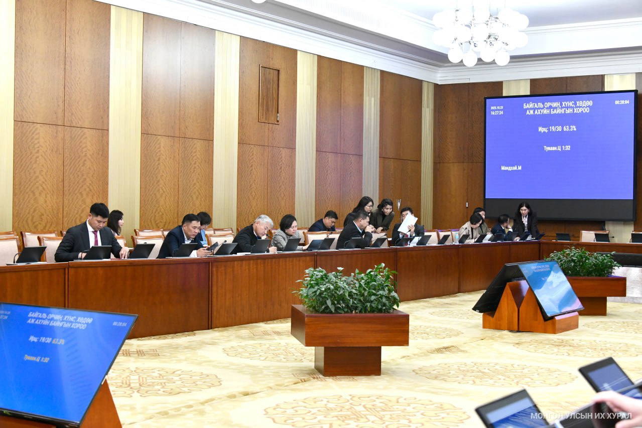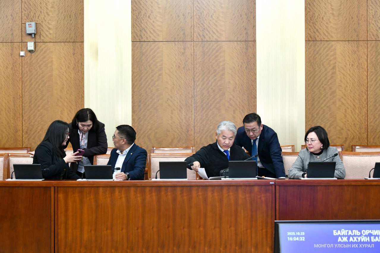 Улсын Их Хурлын Байгаль орчин, хүнс, хөдөө аж ахуйн байнгын хорооны өнөөдрийн /2025.10.23/ хуралдаан 15 цаг 50 минутад гишүүдийн ирц бүрдсэнээр эхэлж, гурван асуудал хэлэлцэн шийдвэрлэв.