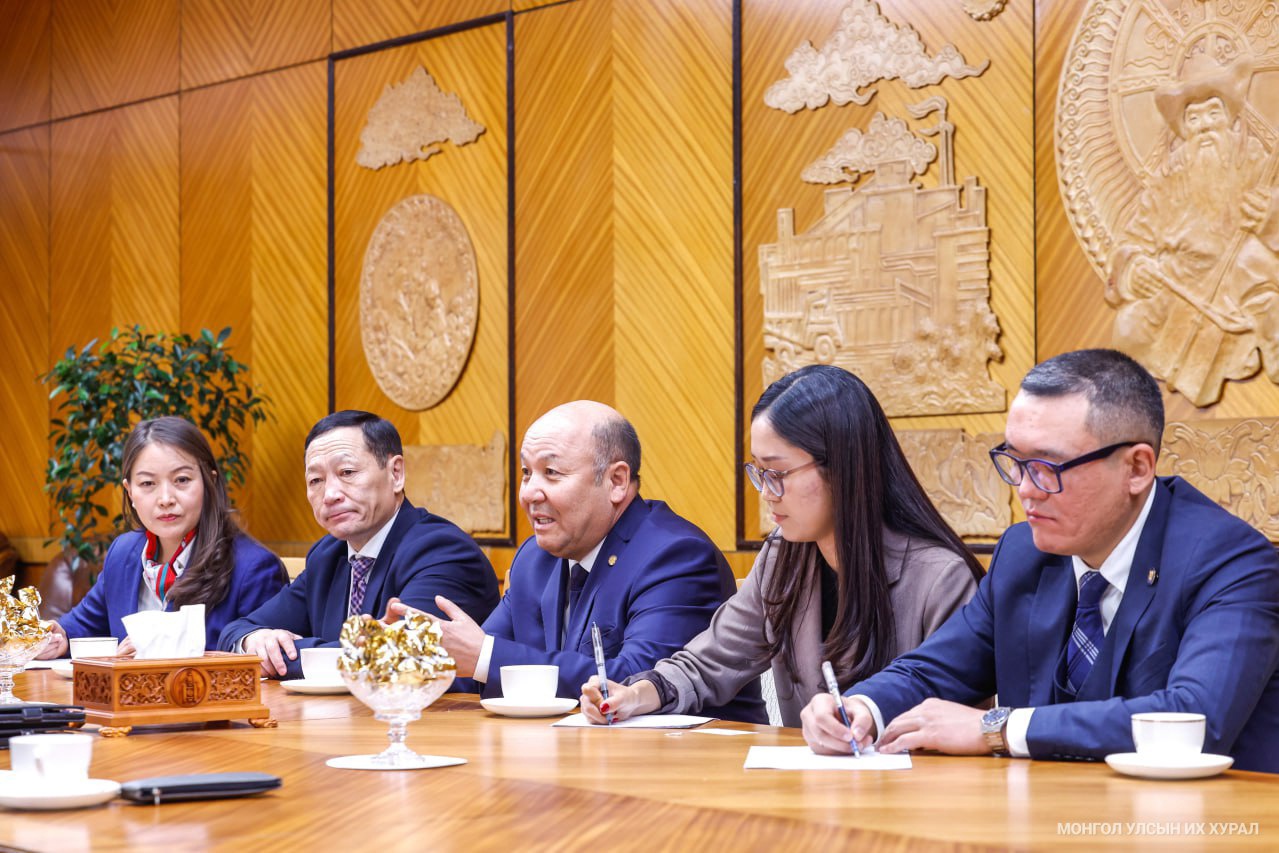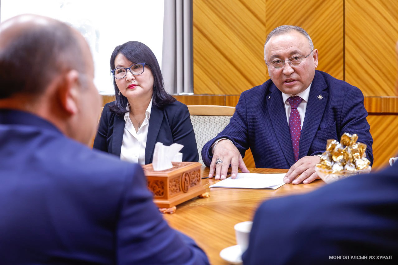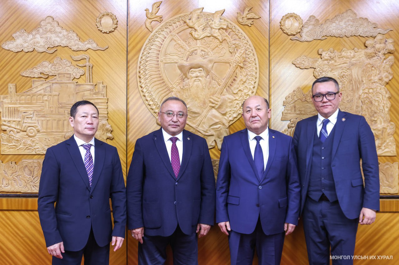 Монгол Улсын Их Хурлын Байгаль орчин, хүнс, хөдөө аж ахуйн байнгын хорооны дарга, Улсын Их Хурал дахь Монгол-Киргизийн парламентын бүлгийн дарга Б.Бейсен өнөөдөр /2025.11.12/ Бүгд Найрамдах Киргиз Улсын Тооцооны танхимын дарга Алмазбек Акматов тэргүүтэй төлөөлөгчдийг хүлээн авч уулзлаа.