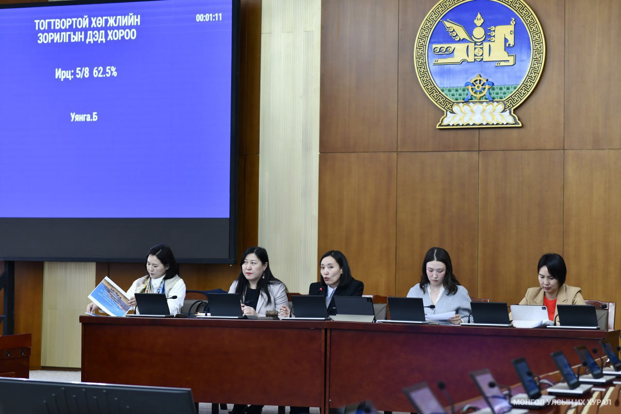 Улсын Их Хурлын Эдийн засгийн байнгын хорооны Тогтвортой хөгжлийн зорилгын дэд хорооны өнөөдрийн /2026.04.14/ хуралдаан ирвэл зохих найман гишүүнээс Улсын Их Хурлын гишүүн Б.Заяабал, М.Мандухай, Б.Пунсалмаа, А.Ундраа, Б.Уянга нар хүрэлцэн ирснээр 62.5 хувийн ирцтэй эхэллээ.