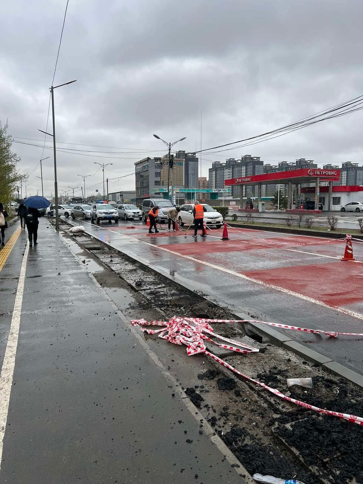 Тэрбээр тус замын хэсэгчилсэн засвар, шинэчлэлтийн хүрээнд хийгдэж буй гарцны өмнөх өнгөт тэмдэглэгээний ажил бүрэн дуусаагүй байна. Борооны улмаас өнгөт тэмдэглэгээний илүүдэл материалууд урссан гэж олон нийтийн сүлжээгээр шүүмжилж байна. Технологийн дагуу өнгөт тэмдэглэгээний илүүдэл материалыг бэхжилтээ бүрэн авсны дараа цэвэрлэдэг. Ямар ч урсаж алга болсон зүйл байхгүй бөгөөд замын чанар, стандартад нөлөөлөхгүй гэдгийг онцоллоо.